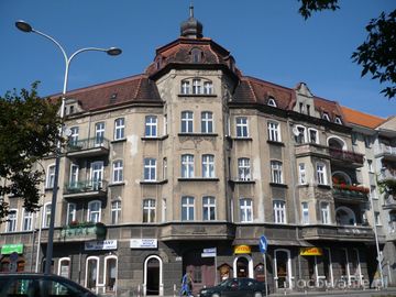Olbrzymia rozłożysta kamienica czynszowa na rogu ul. Zamenhofa d. Fabryczna a Głogowskiej d. Ceglanej,z 1909r,inwestora Magdańskiego z Przygodzic,secesujna z (Ostrów Wielkopolski)