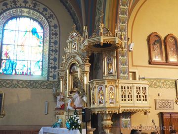 ołtarz boczny po lewej i ambona - w kościele pw. Trójcy Przenajświętszej.