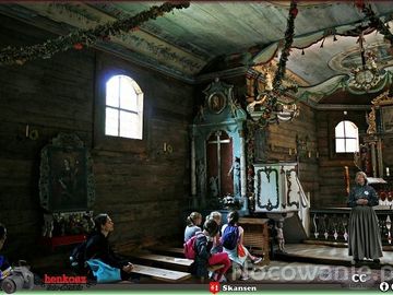 ⚐..Kaszubski Park Etnograficzny im.Teodory i Izydora Gulgowskich - Wdzydze Kiszewskie. Kościół św. Barbary ze wsi Swornegacie w j.kaszubskim Swòrnégace lub też Swòrnigace. ✍.... ołtarz boczny południowy, rokokowo – klasycystyczny, o funkcji chrzcielnicy, z 1796 roku... zdj.3