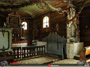 ⚐..Kaszubski Park Etnograficzny im.Teodory i Izydora Gulgowskich - Wdzydze Kiszewskie. Kościół św. Barbary ze wsi Swornegacie w j.kaszubskim Swòrnégace lub też Swòrnigace. ✍....widoczny południowy ołtarz boczny wykonany przez snycerza– Johanna Carla Biereichela. Datowany są na ok. 1795r. Na zdjęciu można także podziwiać barokową ławę kolektorską ... zdj.5