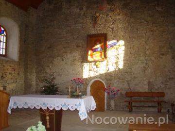 ołtarz główny - dzisiaj, wnętrze zdobi współczesna kopia ikony Matki Boskiej Łopieńskiej. Liczną gromadą, która nawiedzała jarmarki w Łopience, byli włóczędzy i (Buk)