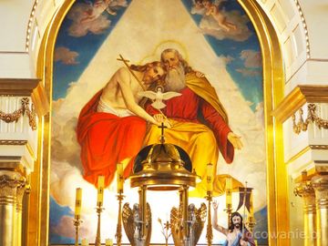 ołtarz główny - tam przedstawienie Trójcy Przenajświętszej - kustosz sanktuarium przekazał iż to "jedyne takie na świecie" - co też podkreślamy !