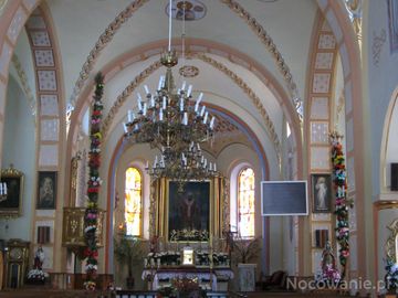 ołtarz główny kościoła pw. św. Wojciecha, bogate zdobienia polichromii arkadowej i sklepienia. Kościół wzniesiony w latach 1924-33 wg planów Jana Skóry - architekta z Krosna, polichromia jest dziełem Stanisława Jakubczyka - artysty malarza, urodzonego w 1916r. w Lubatowej k/Iwonicza Zdroju, który praktykował u Władysława Lisowskiego z Sanoka, wykonał ponad 100 polichromii.