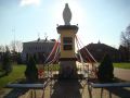 Ołtarz główny późnobarokowy, z ornamentami, obrazami i rzeźbami z XVIII wieku. Polichromia nawy w stylu rokokowym, wykonana po 1800 roku. (Jaćmierz)