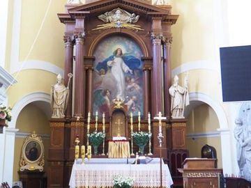ołtarz główny w kościele pw. Wniebowzięcia NMP w parafii św. Zygmunta w Opinogórze Górnej.