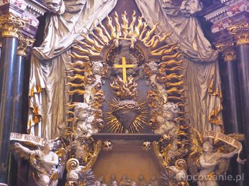 ołtarz w kaplicy Serca Jezusowego, barokowy, zbudowany z elementów dwóch wcześniejszych ołtarzy : św. Franciszka Ksawerego i Najświętszego Serca Jezusowego,aniołowie trzymają szarfę z napisem : "O Serce Jezusa, kocham Cię, jak Ty pierwej ukochało mnie". Do "Ostatniej Wieczerzy" zasiadł też - przodem do nas - Judasz, z sakiewką w ręce na kolanach, z trzydziestoma srebrnikami.
