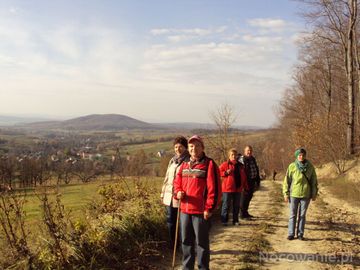 opuszczamy wieś - po prawej : sektor Lasu Gonszczawa a hen zalesiona g. Wroczeń - 498m npm i jako ciekawostka : na jej zachodnim zboczu ma źródła rzeka Stobnica i tam spływa do wsi Lalin /jest galeria - zapraszam/.