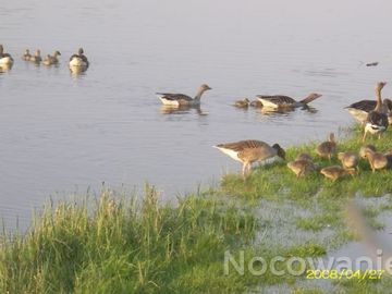 Osieczna - dzikie gęsi z młodymi  (Jeziorki)