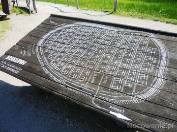 Osiedle w Biskupinie powstało najprawdopodobniej zimą 738 roku p.n.e. Założono je na podmokłej wyspie na Jeziorze Biskupińskim (obecnie półwysep), o kształcie w przybliżeniu owalnym i powierzchni ok. 2 ha (w obrębie wałów mieściło się ok. 1,3 ha powierzchni). Wyspa wznosiła się 0,8 – 1,2 m ponad wody otaczającego jeziora. Gród biskupiński był zasiedlony przez 150 lat. Na terenie osady znajdowało się ok. 106 domostw, o wymiarach przeciętnie ok. 8 × 10 m, usytuowanych rzędowo wzdłuż moszczonych drewnem 11 ulic, o szerokości ok. 2,5 m każda. Ocenia się, że w osadzie mieszkać mogło od 800 do 1000 osób. Osada otoczona była skrzynkowym wałem drewniano-ziemnym o długości 740 m, szerokości 3 m i domniemanej wysokości do 6 m, w którym znajdowała się brama wjazdowa. Gród otoczony był falochronem o szerokości od 2 do 9 m, zbudowanym z ukośnie wbitych pali. Gród w Biskupinie uznany został za pomnik historii Polski. / Źródło - Wikipedia /.