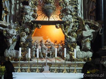 "Ostatnia Wieczerza" - w ołtarzu głównym Kaplicy Serca Jezusowego. Pośrodku - od przodu stołu : przedstawienie Judasza, który trzyma w swym ręku opartą na kol (Świdnica)
