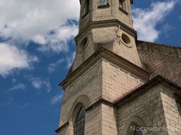 Ostrowce -średniowieczna osada, na zdjęciu wieża kościoła Jana Chrzciciela. (Brzostków)
