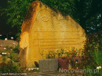 Pamiątkowy kamień - tablica wotywna u stóp Krzyża na wzgórzu.