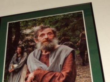 pan ze zdjęcia służy jako przewodnik po skansenie - tu ucharakteryzowany bierze czynny udział w kręconym w tamtejszych plenerach filmie fabularnym. (Sanok)