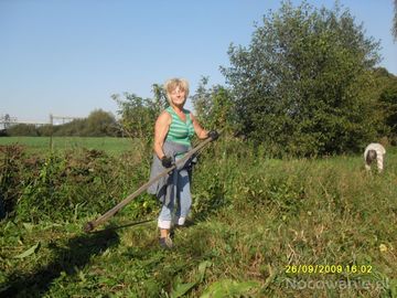 Pani Władzia z kosą w tany ruszyła, a zielsko kładło się niczym dywan