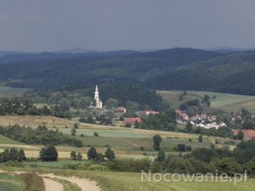 Panorama Pławnej Górnej. Wzdłuż drogi,przez całą wieś Pławna tj.dolną i górną, przepływa strumyk-rzeczka "Kózka".Można w niej zobaczyć pstrąga. (Pławna Górna)