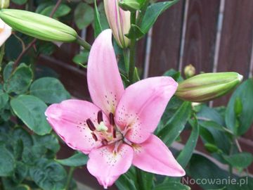 Piękna lilia przy domku letniskowym.