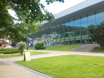 Pijalnia Główna + w odbiciu Dom Zdrojowy (Krynica-Zdrój, Krynica Górska)