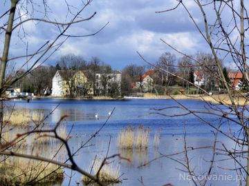 Pilec-widok na Pilecki Staw z drogi na Mrągowo.Po drugiej stronie Pileckiego Stawu znajduje się budynek dawnego młyna zbożowego.04-04-2015 (Pilec)