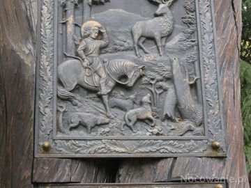 plakieta ubogacająca kapliczkę przyleśną - po otoku: bogata ornamentyka wici roślinnej, centralnie: scena z przekazów biblijnych a tam też w prawym dolnym rogu: drzewo złamane - symbol przerwanego życia ale i też jakby na drugim planie: ładne, zdrowe, dorodne drzewa - co znaczy: życie trwać będzie ! poniżej tabliczka fundatora.