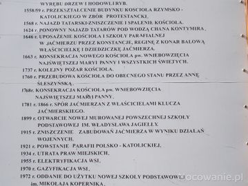 plansza - a na niej chronologiczna encyklopedia, stanowi kompendium wiedzy o dziejach miasteczka, które chętnie poznają turyści, przejezdni, miłośnicy regionu. (Jaćmierz)