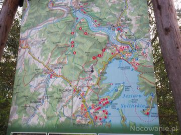 plansza - osadzona w ramie na stojaku, na niej świetna mapa okolicy. (Solina)