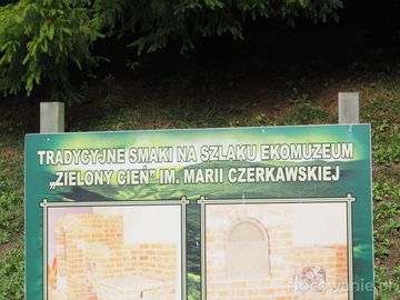 plansza przy Szlaku "Zielony Cień" - warto i należy poznać dzieje i dorobek twórczy Marii Czerkawskiej - była poetką, nowelistką, autorką książek dla dzieci, pisała m.in. o miodach przez szkło pachnących - z tamtejszych pasiek.