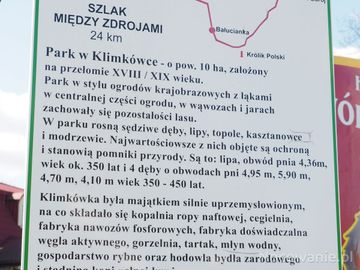 plansza z informacjami dotyczącymi historii i położenia wsi i dworu. (Klimkówka)