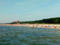 Plaże w Łebie i ta oficjalnie popularna na wschód od wejścia do portu jak i ta pod wydmą łącką, są najładniejszymi w całej Europie. Ich szerokość, piasek pod stopami, wysokie wydmy otaczające je od strony lądu, kuszą turystów z całej Europy do przyjazdu i plażowania. Byliśmy tutaj w końcówce sierpnia 2019 (22-27), było słonecznie i gorąco. Na plażach tłok niemiłosierny. Mimo to, każdy mógł znaleźć sobie miejsce na "grajdołek"