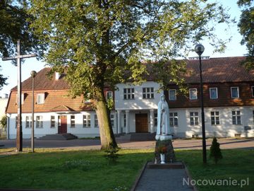 Plebania przy kościele Podwyższenia Krzyża Świętego z figurą Matki Bożej Fatimskiej. (Działdowo)