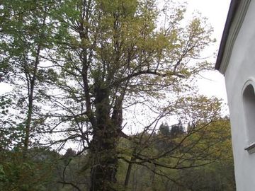 po prawej: ściana cerkwi, pośrodku - lipa a za nią potok Rupnik, studenci co to społecznie podczas wakacji przy cerkwi pracowali i jej otoczeniu - znają "smak" wody z tego potoku i cudownego źródełka tam bijącego...- odsyłam do prac dziennikarza radiowego i telewizyjnego Pana Andrzeja Potockiego - podobne zdjęcie w galerii robione zimą.