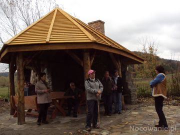 pod wiatą przystankową - na terenie Uniwersytetu Ludowego z panią wykładowcą, mówiła nam że w okresie letnim odbędzie się w Uniwersytecie kolejna, Międzynarodow (Wola Sękowa)