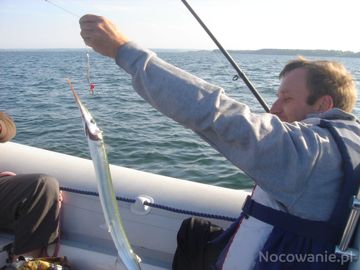 Podczas corocznej majowej "beloniady". Ta rybka to belona (bocian bałtycki). Ma fajne fluo-zielone ości. (Rewa)