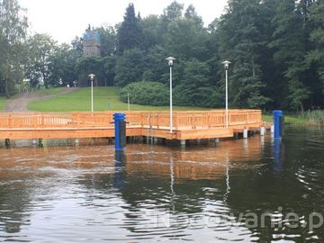 Pomost widokowo-cumowniczy przy wieży Przemysława (w tle)