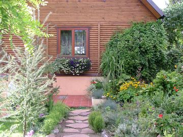 Pomysłowo zbudowny i interesująco usytuowany domek nad jeziorkiem (?)..... (Barciany)