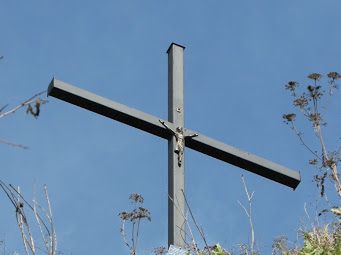 ponad drogą, głównym traktem - co kiedyś pozwalał na zaopatrzenie budowy zapory w Myczkowcach a i następnej w Solinie, to droga strategiczna - silna / mocna, kamieniem wyłożona - na wysokim poboczu / na skarpy płaszczyźnie: krzyż z tablicą ku pamięci tych, co życie "TU" stracili, podczas wojny i po niej, i w czasie pozornego pokoju...