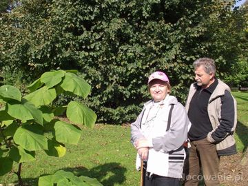 potężne, wiekowe, wprost dostojne - w pewnym oddaleniu, toteż wcale nie zagłusza krzewów niższych, tu : demonstruje piękne, duże liście, soczyście kolorem obdarzone.