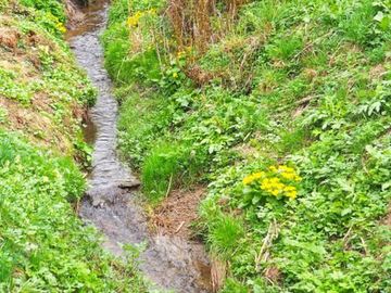 potok ze zbocza swe wody toczy - ruczaj niemalże - kaskadowo.