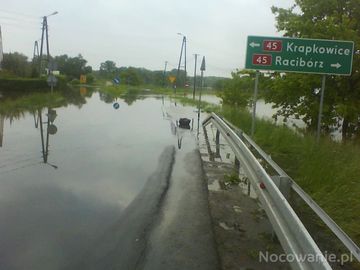 Powódź 2010. Zalana droga krajowa 45 - Żywocice na skrzyżowaniu z wojewódzką 416, zdjęcie z 20 maja, godz. 19.01. (Żywocice)