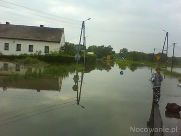 Powódź 2010. Zalana droga krajowa 45 - Żywocice na skrzyżowaniu z wojewódzką 416, zdjęcie 20 maja, godz. 19.06. (Żywocice)