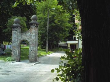 Pozostałość po okazałej bramie. Między ul. Jana Sobieskiego a ul. Do Studzienki.