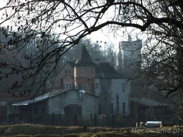 Pozostałości architektury majątku von Kramstów widoczna na 2 planie wieża to pozostałość po pałacu który został "rozebrany" po II WŚ