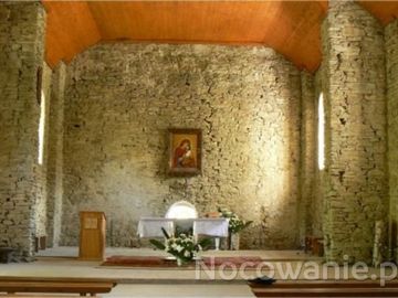 prezbiterium zamknięte ścianą prostą, nawa szersza wydłużona, wewnątrz w prezbiterium i nawie: ściany podzielone lizenami, - odremontowane wnętrze świątyni. Od 3 X 2010r. jest też nowy dzwon zawieszony - to pani Malina Czyżewska z Polańczyka ufundowała, tam kawiarnia "Pod Malwami" a pan Zenek - "Traper" ufundował ławki, okiennice i drzwi dzwonnicy ! ukłony obojgu...
