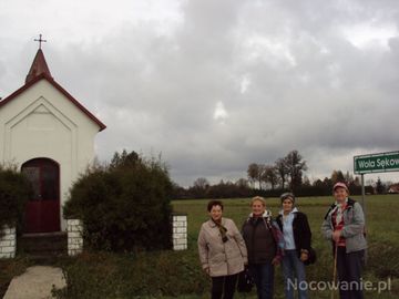przed / obok : kapliczka domkowa - na rozstajach, wewnątrz ołtarzyk neorokokowy, murowana i otynkowana, dach dwuspadowy kryty blachą, zabytkowa - 2-ga poł. XIX (Wola Sękowa)