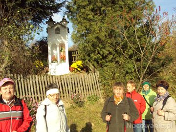 przed / obok : ponad stuletniej dwuwieżowej kapliczki - po lewej drogi do Lasu Gonszczawa.