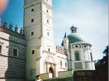 przed: budynek bramny z wieżą zegarową i Baszta Boska z kaplicą - na narożach są ponadto baszty: Papieska, Królewska i Szlachecka zwana też Rycerską. Jest jeszcze coś ! - od strony dziedzińca można widzieć : proszę uważnie spojrzeć na wieżę - u jej szczytu, po lewej stronie wisi... prawdziwa olbrzymia bomba ! - na krowim łańcuchu wisi i w czasie silnej burzy się kołysze...