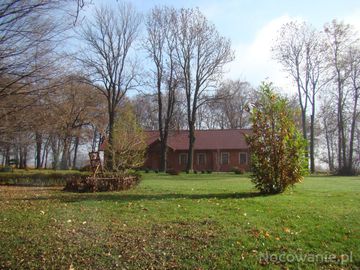 przed budynkiem dawnego folwarku - "w Chmurówkach" , w parku częste nasadzenia drzew i krzewów "egzotycznych".