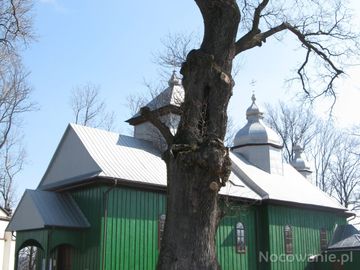 Przed dawną cerkwią pw. św. Szymona Słupnika - z 1872r. Od 1946r. kościół pw. Narodzenia NP.Marii. Obok dzwonnica z 1934r. Przy kościele 700 /siedemset/ letni dąb.