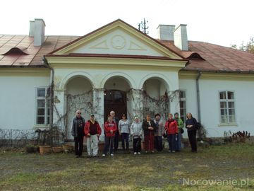 przed dworem - przyjęci byliśmy przez właścicielkę zespołu dworskiego panią Annę, dostaliśmy zgodę na fotografowanie, na pamiątkę pobytu tam wszyscy otrzymaliśmy upominki - a spodziewać się należy, że gdyby czasu starczyło, to i plackiem byśmy byli częstowani - wiele serdeczności, toteż : dziękujemy !