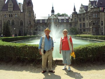 przed fontannami pałacowymi, zachwyca bogactwo form dekoracji w pałacu. (Moszna)