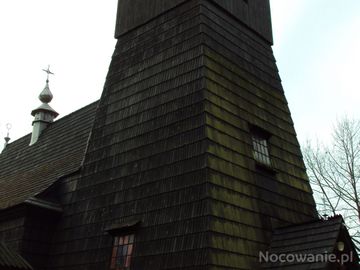 przed kościołem - przed dobudowaną w latach 1983-84 wieżą, jest z nami pani co na świątynię do zwiedzania udostępniła - przy okazji: dziękujemy !